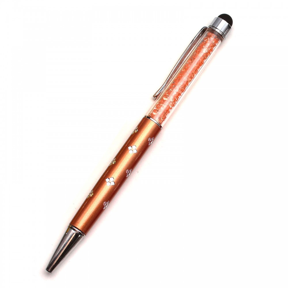 •  1x Orange Crystal Flower Style Handle Stylus with Pen